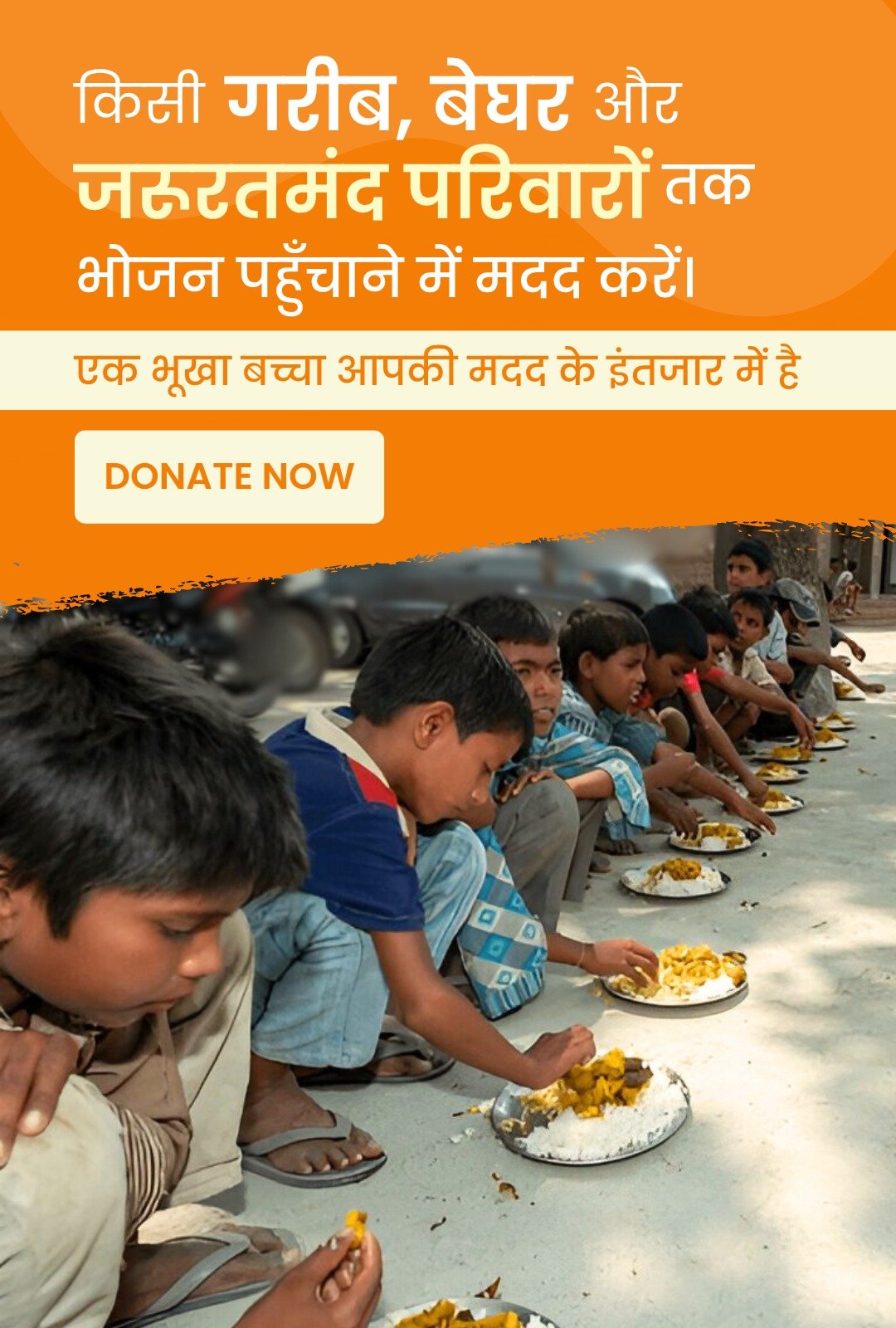 Millions of poor children sleep hungry every night, waiting for just one meal. Your support can be the reason a child smiles today, with a filled stomach and a heart full of hope.